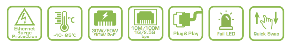 Việc sử dụng bộ chống sét lan truyền để bảo vệ các thiết bị nhạy cảm và đắt tiền khỏi sét đánh và xung điện trên cáp Ethernet đã trở nên rất quan trọng. SD-404-V2 và SD-424-V2 là bộ chống sét lan truyền PoE với thiết kế dạng mô-đun giúp giữ cho các bộ chuyển mạch PoE, PoE PD và bất kỳ thiết bị IP nào khác an toàn khỏi sét đánh và các dạng nhiễu điện khác như xung điện và xung điện áp trên cáp mạng. Thiết kế mô-đun thay thế cho phép bạn hoán đổi các mô-đun mà không cần tháo toàn bộ thiết bị khỏi thanh ray hoặc giá đỡ. Các thiết bị này hoàn toàn tương thích với chuẩn 802.3af/802.3at/802.3bt, cung cấp khả năng bảo vệ cho cả dữ liệu Ethernet và nguồn cấp điện PoE, bao gồm camera IP ngoài trời, AP không dây và các thiết bị mạng khác. Các bộ chống sét lan truyền PoE được tôi luyện này hoạt động ở nhiệt độ từ -40°C đến 85°C trong điều kiện thời tiết khắc nghiệt, thiết kế cắm và chạy giúp dễ dàng bảo vệ chống sét lan truyền lên đến 20KV / 10KA.