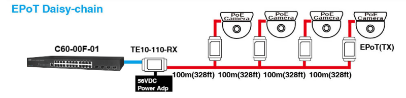 Model tiên tiến này là giải pháp PoE tầm xa, cung cấp dữ liệu và nguồn điện cho bộ chuyển đổi EPoT TX và camera IP PoE qua một cáp UTP/STP duy nhất, lên đến 1.200m (3.937ft).