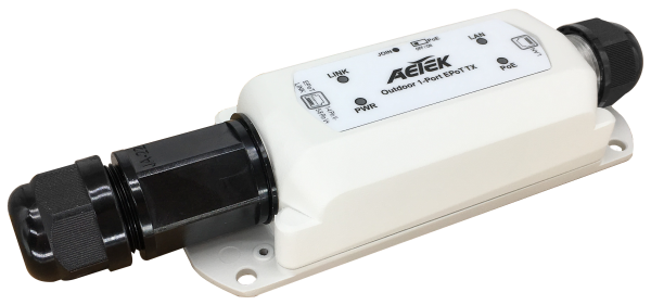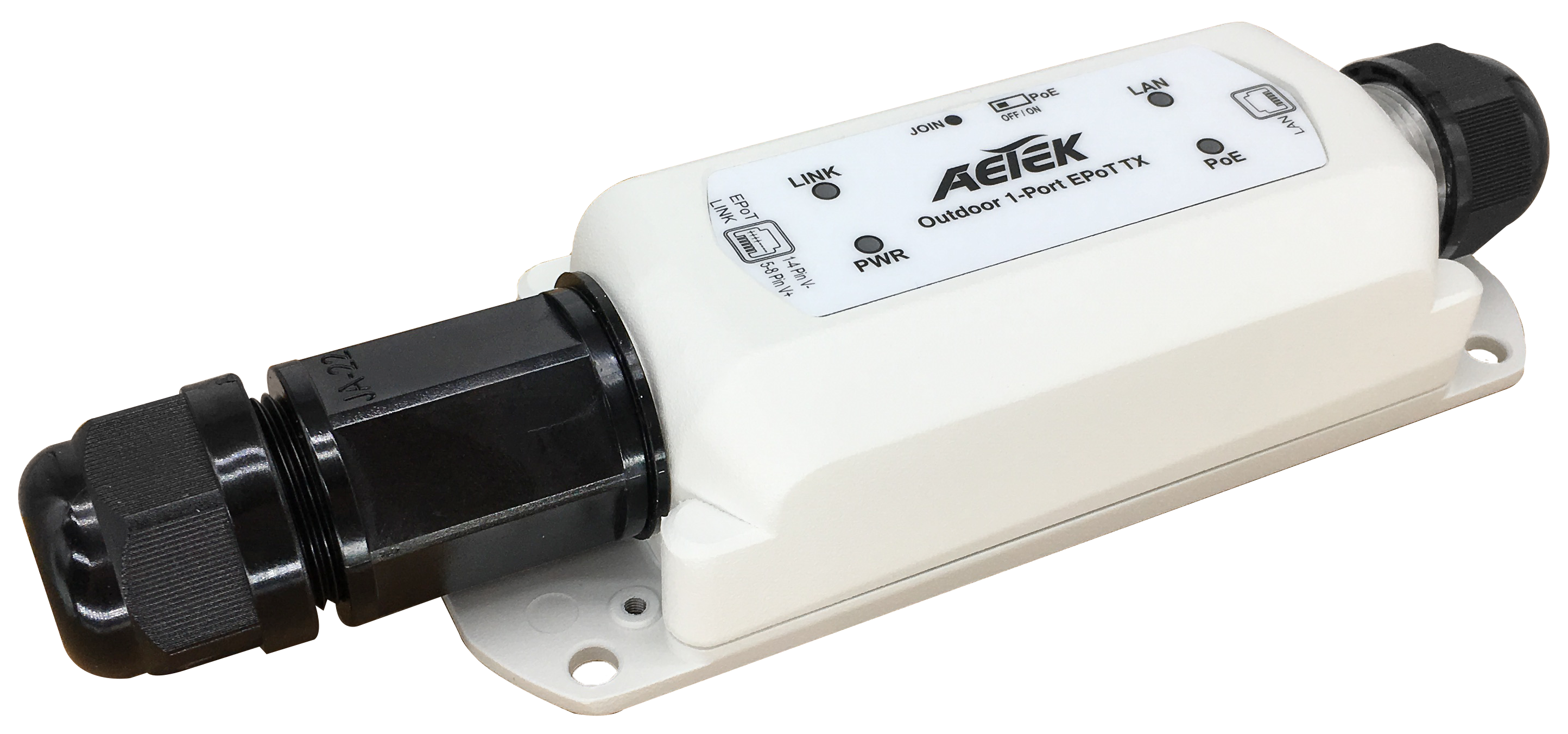 TE22-110-TX, bộ chuyển đổi máy phát (TX) EPoT (Ethernet & Cấp nguồn qua cáp UTP/STP) ngoài trời 1-to-1, được trang bị 1 cổng EPoT và 1 cổng RJ-45 PoE, được thiết kế để kết nối camera IP PoE từ xa qua một cáp UTP/STP mà không cần nguồn điện bổ sung. Model tiên tiến này cung cấp dữ liệu và nguồn điện ở khoảng cách xa lên đến 1.200m cho một camera IP PoE.
